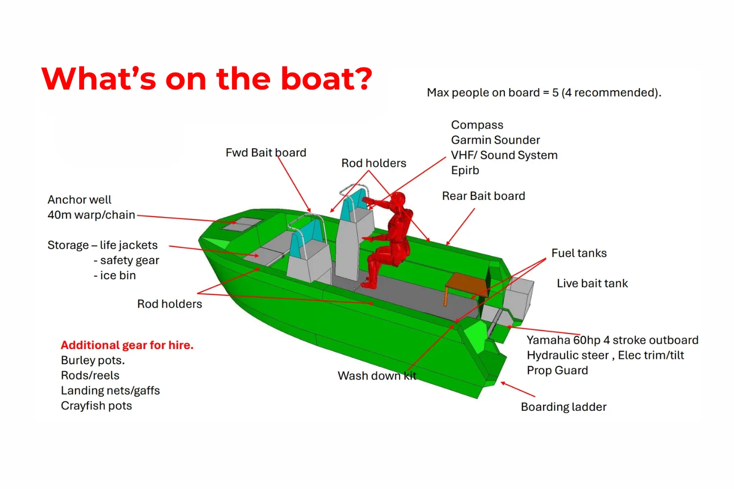 - Self bouyant plus approximately 400L bouyancy foam