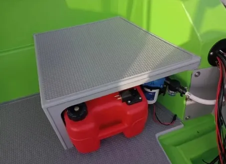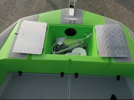 - Large anchor locker with lid & drain